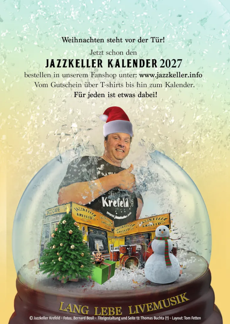 Der ultimative Jazzkeller-Kalender 2026! Dieser einzigartige Kalender verbindet die Magie von Live-Performances mit einzigartigen Erinnerungen. Perfekt für dein Zuhause, Büro oder als Geschenk für Musikliebhaber.